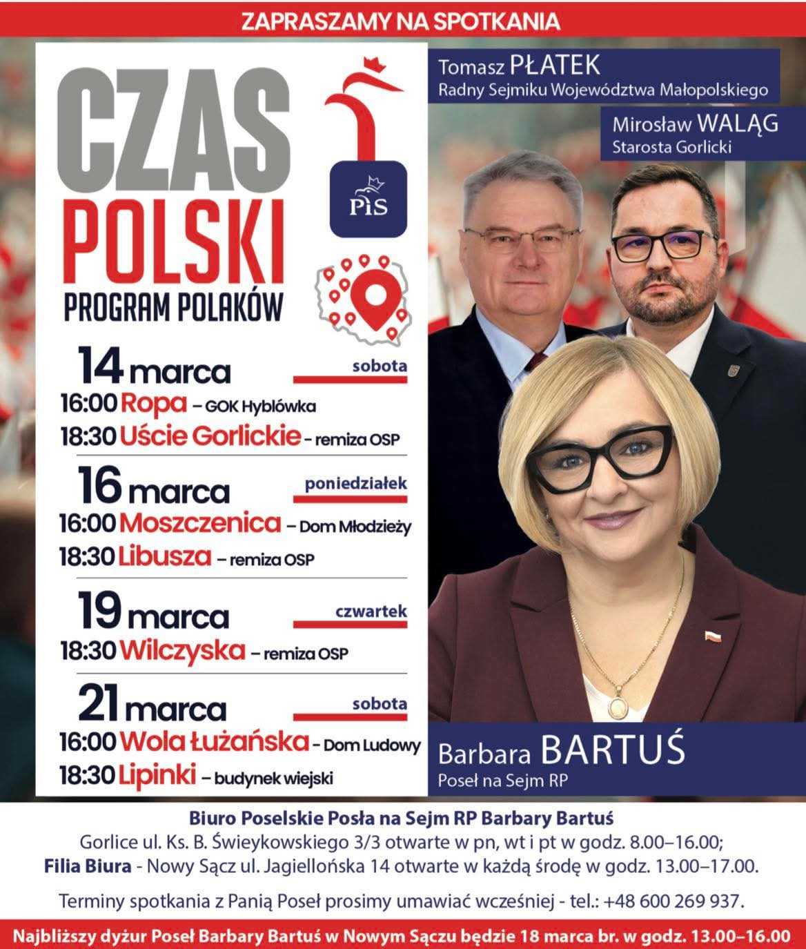 Poseł na Sejm RP Barbara Bartuś wzięła udział w XII Przeglądzie Dorobku Kół Gospodyń Wiejskich Gminy Grybów, który odbył się w miejscowości Polna. Wydarzenie zgromadziło Koła Gospodyń Wiejskich z terenu Gminy i było okazją do zaprezentowania bogactwa lokalnych tradycji, regionalnej kuchni oraz twórczości rękodzielniczej.