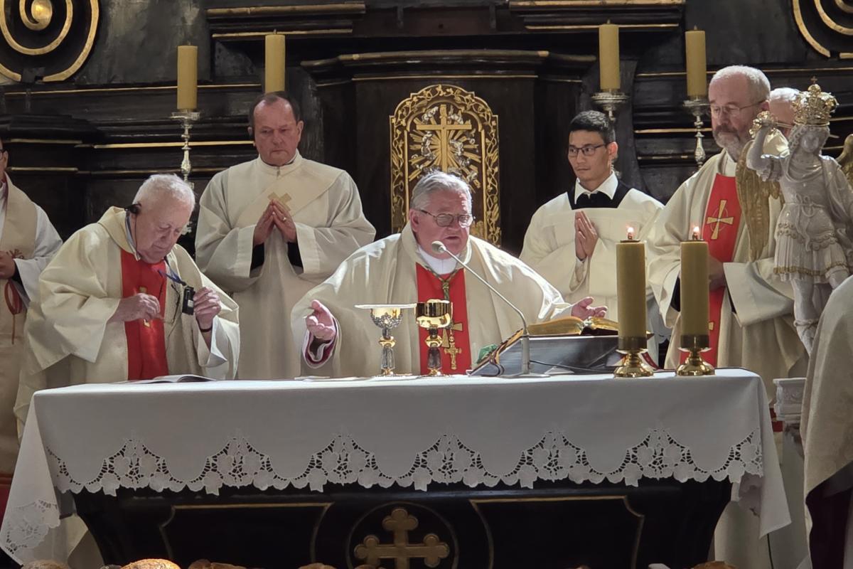 Następnie uczestnicy przeszli do Polskiego Sanktuarium Narodowego, gdzie odbyła się uroczysta Msza Święta sprawowana w językach polskim, włoskim i niemieckim pod przewodnictwem ks. Johannesa Marii Szypulskiego, opata klasztoru cystersów. W homilii przypomniano postać św. Stanisława Papczyńskiego, spowiednika Jana III Sobieskiego, oraz głęboką wiarę Króla, który przed wyprawą do Wiednia pielgrzymował do Częstochowy i krakowskich sanktuariów, powierzając zwycięstwo Maryi. Podkreślono, że bez wiary nie ma prawdziwego postępu, a prawdziwą drogą jest życie według wartości: Bóg, Honor, Ojczyzna.