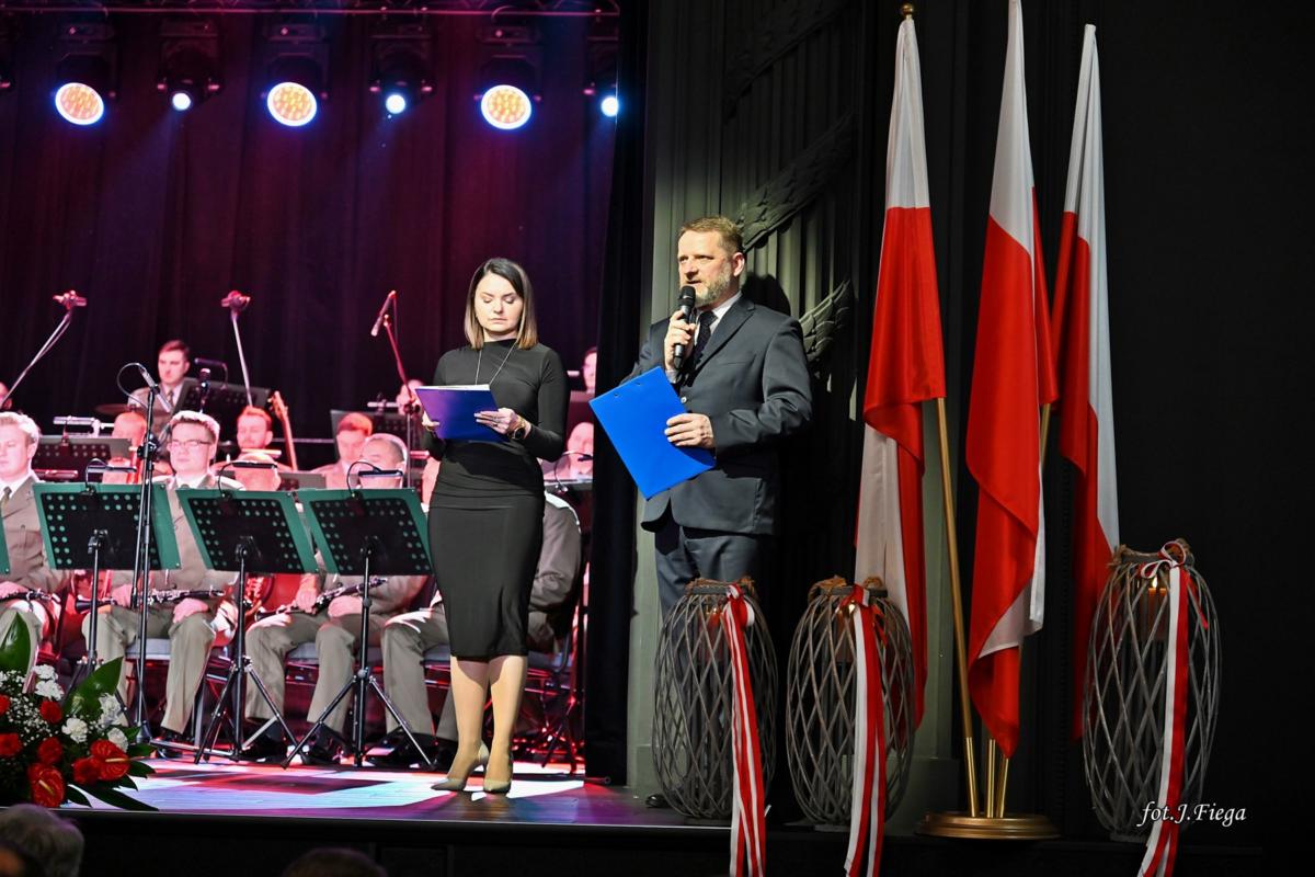 Dalsza część obchodów odbyła się w Gorlickim Centrum Kultury. Rozpoczęto wspólnym odśpiewaniem hymnu Rzeczypospolitej Polskiej, poprowadzonym przez laureatów X Gorlickiego Konkursu Pieśni Patriotycznej. Po odśpiewaniu hymnu prowadzący wydarzenie, pani Mariola Spólnik i pan Krzysztof Jędrzejczyk, powitali zgromadzonych gości, wśród których obecni byli m.in. Poseł do Parlamentu Europejskiego Arkadiusz Mularczyk, Marszałek Województwa Małopolskiego Łukasz Smółka, Konsul Generalny Węgier w Krakowie dr Tibor Gerencser oraz Pan Piotr Milczanowski reprezentujący krakowski Oddział Instytutu Pamięci Narodowej.