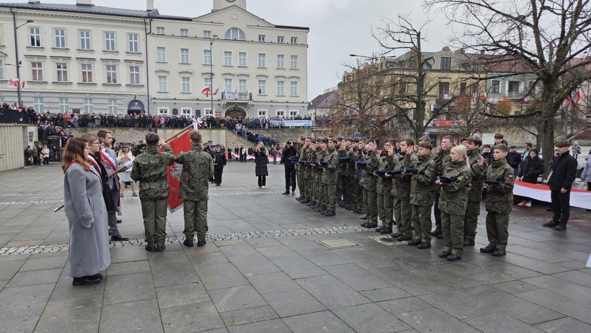 Po Eucharystii uczestnicy przeszli na Rynek, gdzie odbyło się ślubowanie uczniów nowo utworzonej klasy przygotowania wojskowego z Zespołu Szkół Zawodowych im. K. Pułaskiego. To wyjątkowe wydarzenie, będące sukcesem Samorządu Powiatu Gorlickiego, spotkało się z dużym zainteresowaniem mieszkańców, którzy tłumnie przybyli na gorlicki Rynek.