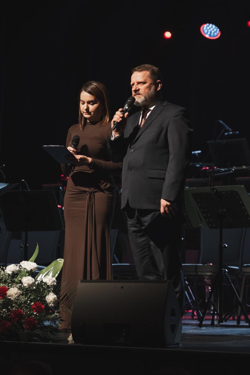 Prowadzący uroczystość Mariola Spólnik – Wiceprzewodnicząca Rady Powiatu oraz Krzysztof Jędrzejczyk – dyrektor Zespołu Jednostek Edukacyjnych Województwa Małopolskiego w Gorlicach powitali zaproszonych gości, wśród których znaleźli się m.in.: Poseł na Sejm RP Barbara Bartuś oraz Wicemarszałek Województwa Małopolskiego Ryszard Pagacz – Patroni Honorowi, a także przedstawiciel Prezydenta Rzeczypospolitej Polskiej Karola Nawrockiego – etatowy doradca Prezydenta RP prof. Dariusz Dudek.